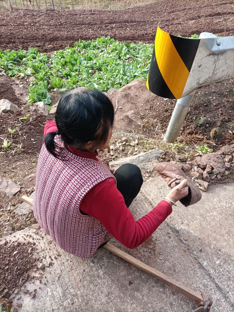正在倒鞋子里的泥巴。(拍摄于2025.3.30)