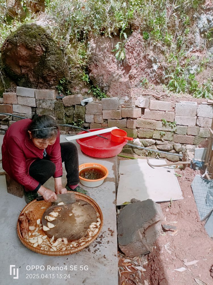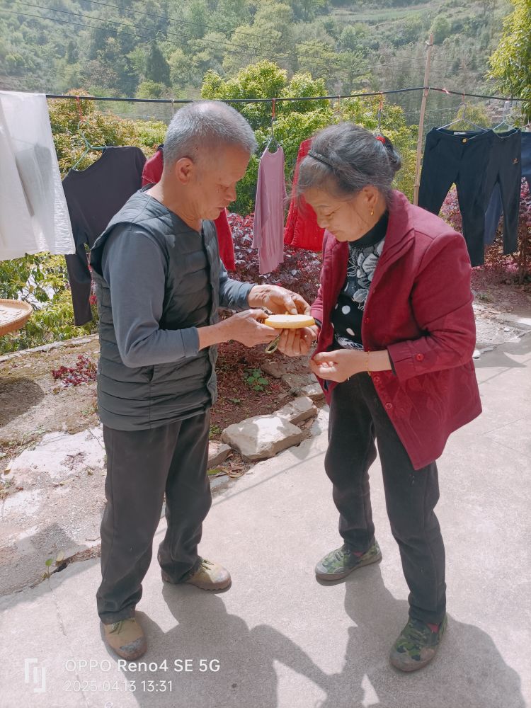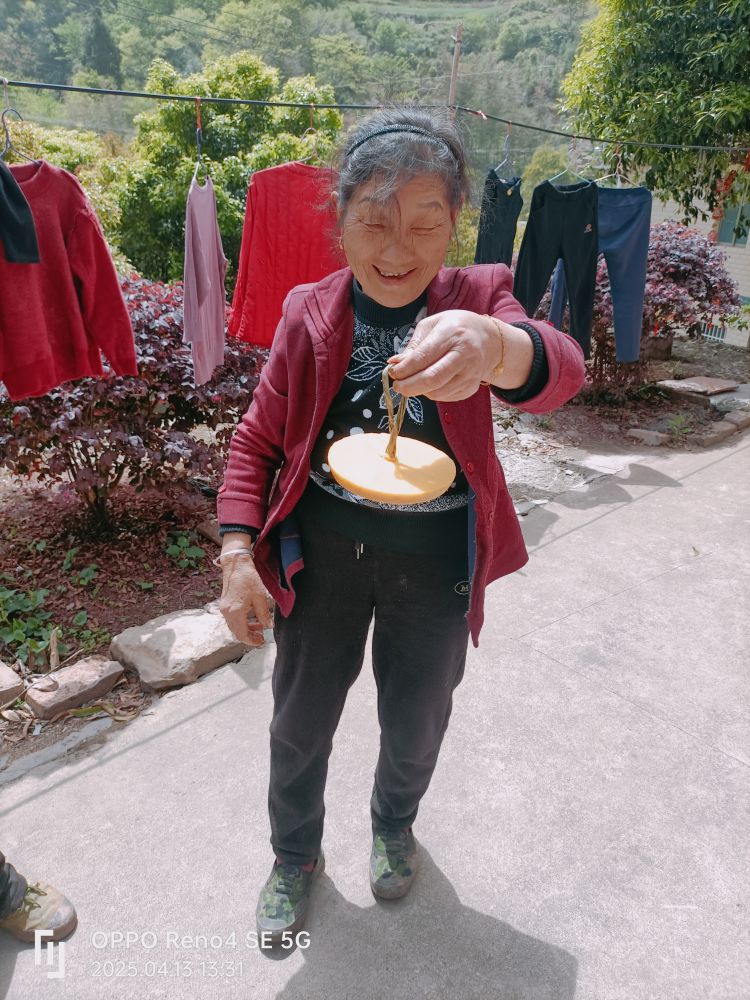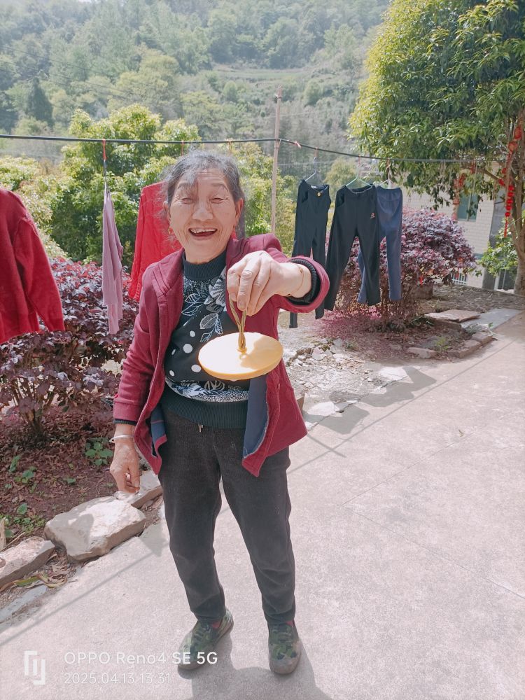 二婶昨天取了蜂蜜,且制作了一个可爱的蜡饼,拿着自己的杰作乐开了花。