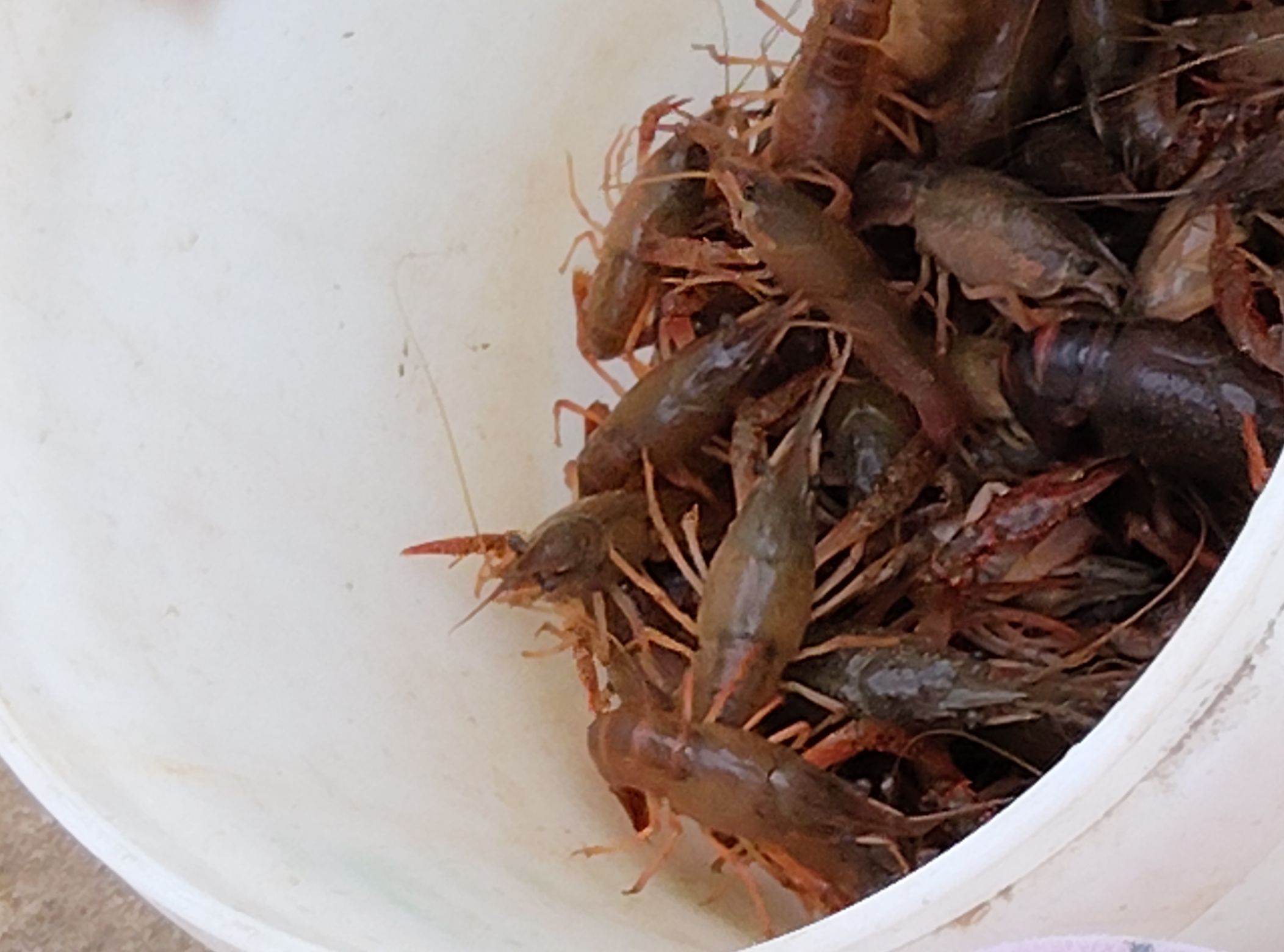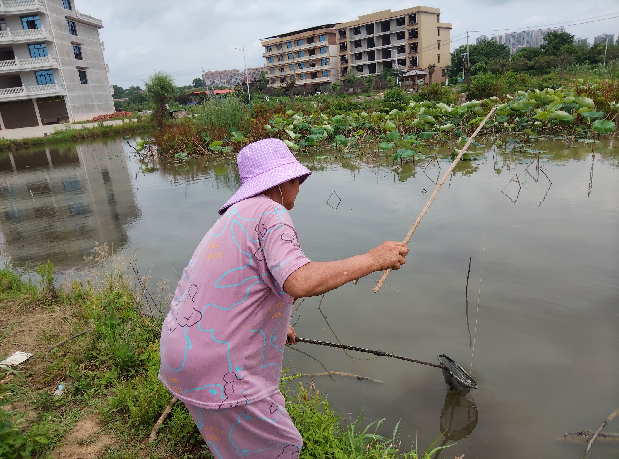 阿姨钓虾经验丰富,一下子钓了好几斤