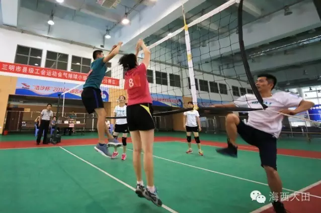 三明工会2016年运动会气排球小组赛(大田赛区)昨天在大田体育馆举行。来自市总工会职工校、永安市总工会、三元区总工会与我县总工会代表队进行了友谊赛。市总工会职工校代表队小组第一名将参加全市工会气排球比赛角逐。