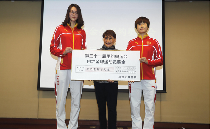 邵逸夫基金会奖励里约奥运内地金牌运动员