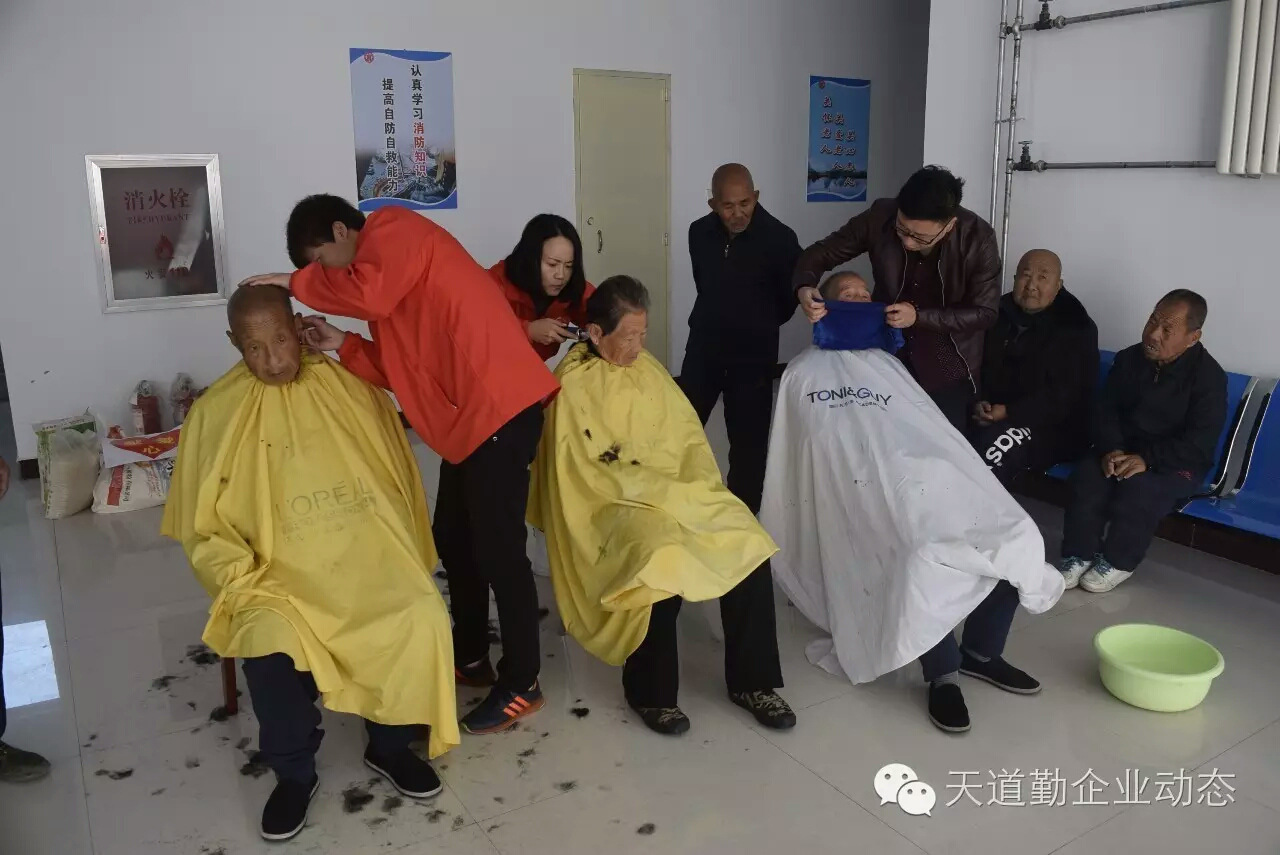我们给孤寡老人梳洗理发;老人们耐心等待。。。。