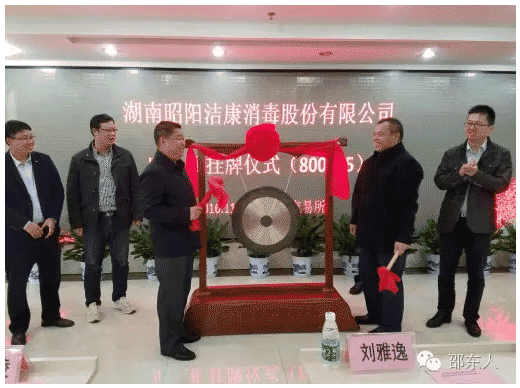 在挂牌仪式上洁康消毒董事长黄嗣林发表了挂牌感言,表示登陆资本市场对于企业长远发展意义重大;湖南股交所技术总监薛凌表达了对洁康下毒挂牌股交所热烈祝贺,并向出席的领导和嘉宾介绍了湖南股交所的最新发展情况;邵东县卫生计生综合监督执法局局长刘雅逸做了重要发言,首先祝贺了洁康消毒在湖南股交所的成功挂牌,表彰了洁康消毒在为老百姓的“放心碗”工程中起到了重要作用,并表示卫生监管部门将积极为优质挂牌企业提供绿色服务通道,支持优秀企业通过资本市场加快发展、做优做强。
