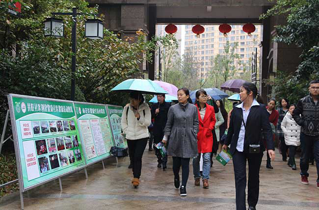 大家一起走入服务中心观赏为社区创办的服务项目,在参观中相互交流