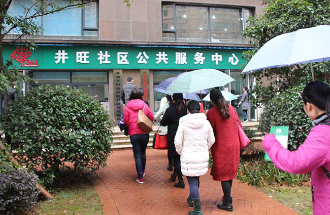 在许主任的带领下一行走进了井旺社区公共服务中心