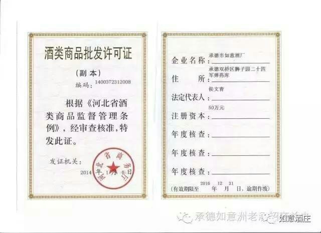 承德市如意酒厂(非广圣居),成立于1985年,已经有20多年的生产和经营历史,是承德市区唯一的酒厂,现在厂址是承德市狮子园后沟,二十四军弹药库,由于“口感好,不上头”“价格实惠”等优点,市场需求和经营规模不断扩大,现有的厂区已经不能满足我们发展的需要,在承德市和双桥区领导的关怀下,在承德市碾子沟,为我们酒厂选定了260亩地,修建“承德老酒文化产业园区”,文化产业园中包括生产厂区、酒店、公寓、别墅、皇家书画院、民俗生活馆、酒文化长廊等等,这里也被承德市双桥区指定为承德市双桥区的一个旅游景点。且于15年10月份成功以1亿零500万收购北辰电力集团旗下,位于双滦区单塔子,占地130多亩,厂房4000多平的工厂区,提供强有力货源保障。已于15年投入一条生产线,并将增开两条身产线供应产量。并于2015年3月15日荣获产业5A级诚信证书,为我们的产品质量提供强有力的信誉证明。我承德如意洲酒业有限公司已于2016年3月10日在上海股交所成功挂牌上市,代码209449.