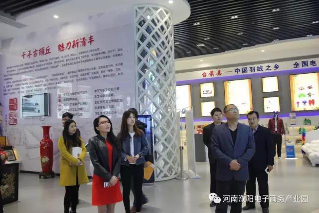 一行人员首先参观了濮阳市特色产品展览馆,现场观看濮阳市形象宣传片,在工作人员的引导下,通过讲解,详细了解了濮阳市五县两区在内18个展厅的特色产品和民族工艺品,同时对产品线上线下销售及市场运营情况进行讨论沟通。随后一行人在电商园会客室就深圳安陶集团意向落地电商园等具体事宜进行了洽谈和沟通。