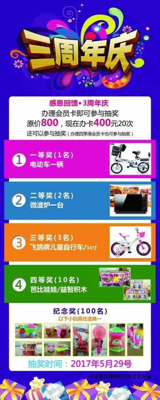 4、票价40/位, 会员卡400元20次开业首周办卡可在端午节参与抽奖活动,一等奖一名雅迪电动车一辆,二等奖两名微波炉一台,三等奖三名14寸自行车一辆,纪念奖若干。