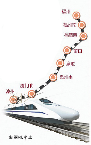 与现有的福厦动车组相比,福厦客运专线将福州厦门之间的时空距离进一步缩短。据了解,福厦客专按照350公里的时速设计,而从福州到漳州全程约300公里,届时从厦门乘高铁直达福州的时间将缩短至50分钟以内。