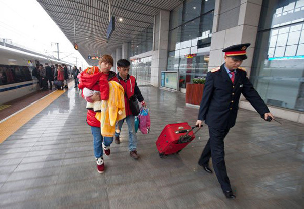 (3月14日早晨,高铁汨罗东站。年轻的吴静、吴天成夫妻抱着女儿小雅姿进站候车。他们要从长沙中转赴上海求医,为身患恶性肿瘤的小雅姿寻找一条求生之路。)