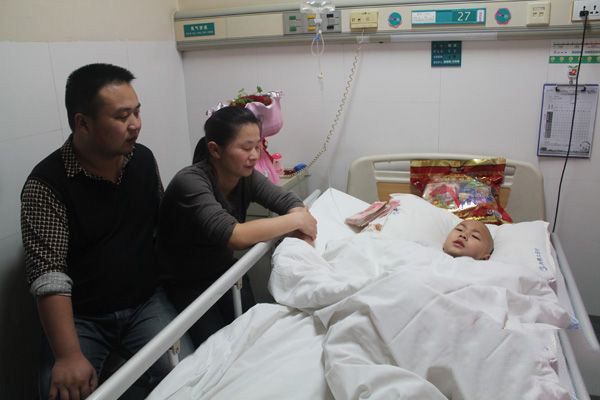 一个漂亮的小女孩,要承受着与年龄不相符的伤痛,在医院看望小紫玥的“爱心之家”成员心里都很沉重,他们挨个走到床边,鼓励小紫玥一定要坚强,要加油。