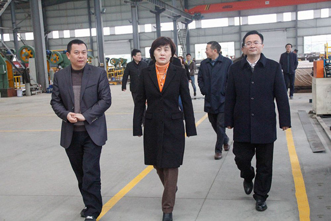 岳阳市委副书记李爱武(中)在汨罗市委书记喻文(右)的陪同下调研循环经济产业园区企业