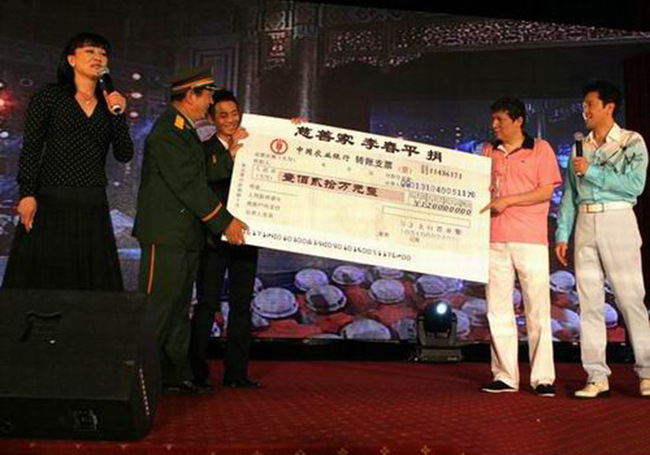 图为李春平捐赠现场。1991年,李春平回到北京,次年开始慈善事业,以平均每天7万多元的速度捐赠,目前捐赠总额已超过7亿元。回忆美国往事,他说:我不情愿却无奈地接受了我情人的身份和与之相匹配的生活方式,逐渐适应了豪华,驾驭了奢侈。