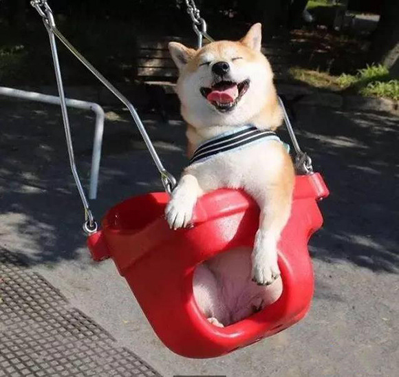 ▼看到这张照片彷佛都能听到小柴正在心中呐喊「我最爱荡秋千了!」