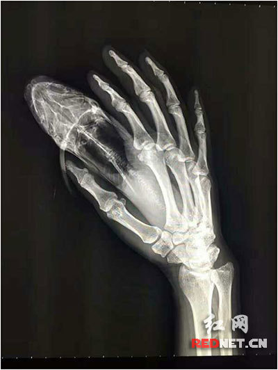 X光片中,可明显看到黄芬手上鱼刺的位置