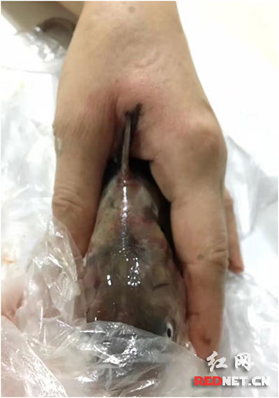 长沙市民黄芬(化名)就是这样抓着鱼来到医院的
