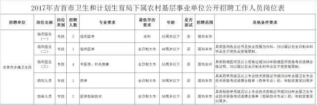 为充实和优化该市卫计队伍,促进我市卫生和计划生育工作健康持续发展,根据相关文件,经研究并报州人社局核准,吉首市卫生和计划生育局下属农村基层事业单位公开招聘工作人员10名。