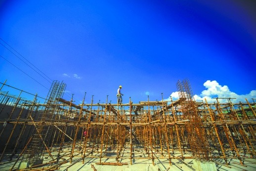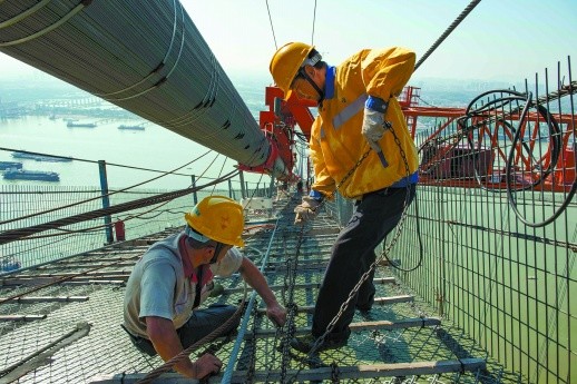 7月25日上午,杭瑞高速洞庭湖大桥,建设工人正冒着酷暑在工地上加紧施工。(图/杨一九 文/湖南日报记者 马俊达)