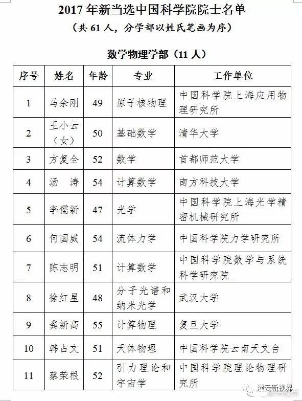 在灌水云山人正沉浸在北京清华长庚医院首任执行院长董家鸿当选2017年度中国工程院院士的喜悦之时,今天上午,2017年度中国科学院院士增选结果又公布了。61人大名单中,就有灌云人徐红星(数学物理学部)。