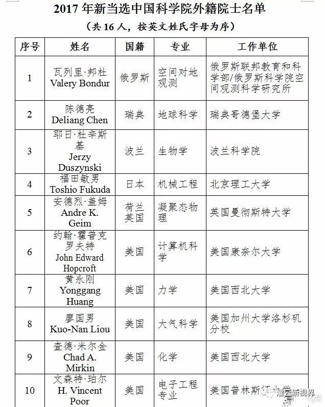 新华网北京11月28日电 两年一度的院士增选公布结果,2017年共产生中国科学院院士61人。新当选院士平均年龄54.1岁,最小年龄46岁,最大年龄67岁,60岁(含)以下的占91.8%。新当选院士中有3名女性。另外,16人新当选为中科院外籍院士,其中有2位诺贝尔奖获得者。