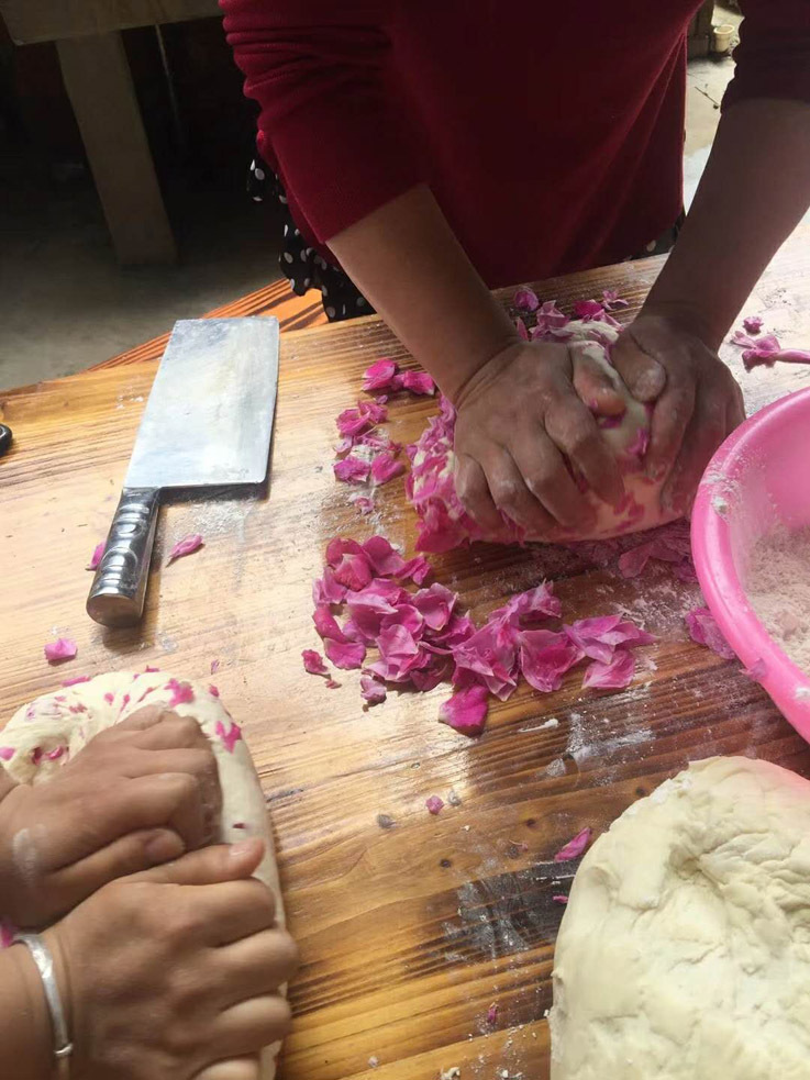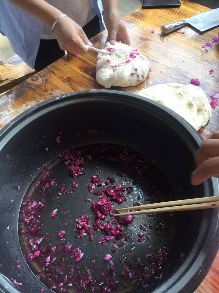 下午游客可以亲自体验制做玫瑰馒头和玫瑰粥,大家可以尽情享受亲近自然,帖近原始生活乐趣。集视觉浪漫与臭觉芬芳和味觉醇厚一体,充分体验大自然馈赠之美妙。(制做玫瑰馒头和玫瑰粥需提前预约,电话:13797637249.我们将做好有序安排。)