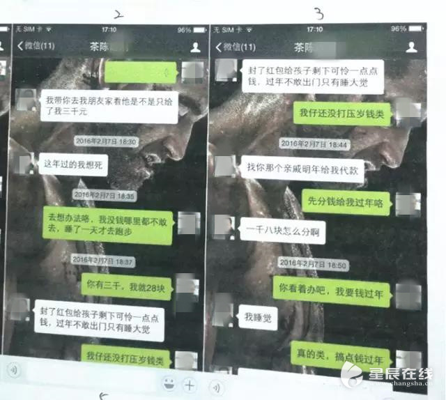 (双方聊天记录。天心区法院供图)