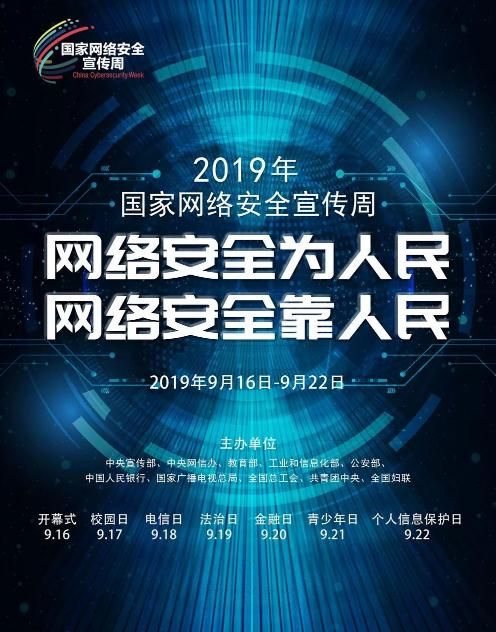 国家网络安全宣传周从2014年开始每年举办一届。本届宣传周以“网络安全为人民,网络安全靠人民”为主题,9月16日至22日期间将举办网络安全博览会、网络安全技术高峰论坛、网络安全主题日等活动。
