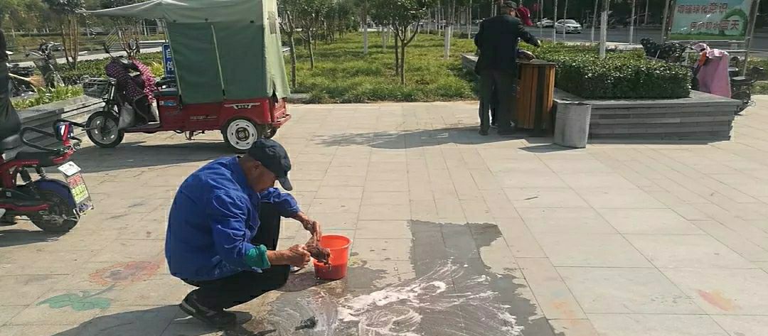 在公园内,还有其他的不文明行为。在公园的石板地上,可以看到小孩子在地上乱涂乱画的“杰作”,五彩斑斓的痕迹,不仅影响美观,更是难清理,尤其刚下完雨的时候,就变成了一片难以言状的污泥。公园里专门用于装饰的彩灯,被偷了20多盏,本来到了晚上,一片灯火辉煌,很是美妙,可现在,只有零星的几盏还亮着。
