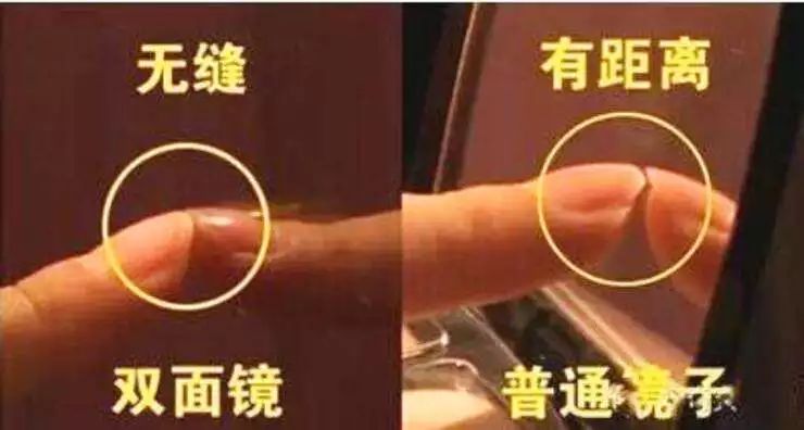 还有一个方法就是,拿自己随身携带的小镜子辨别。将小镜子贴到该镜子上对比一下成像的亮度,照自己的脸或者同一个物体,如果大镜子成像亮度明显低于小镜子,那么你可能已经暴露了。