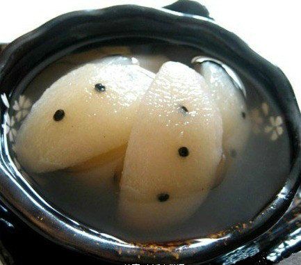 用鲜梨一个,扎五十个孔,每孔塞入一枚花椒,然后裹一层薄面粉蒸熟吃;梨扎上花椒粒形状如刺猬,故名刺猬梨。简单的做法:把梨切块,抓一小撮花椒,加水同煮;煮熟后,去掉花椒,吃梨,饮梨汁。感冒后,咳嗽长期不愈,可用此法试试!