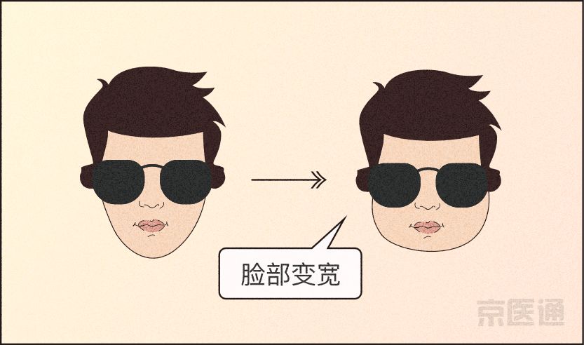 长期夜间磨牙咬牙,骨骼肌肉都会变得粗大,使得一些中老年患者面部变形逐渐形成了一种『宽脸』。