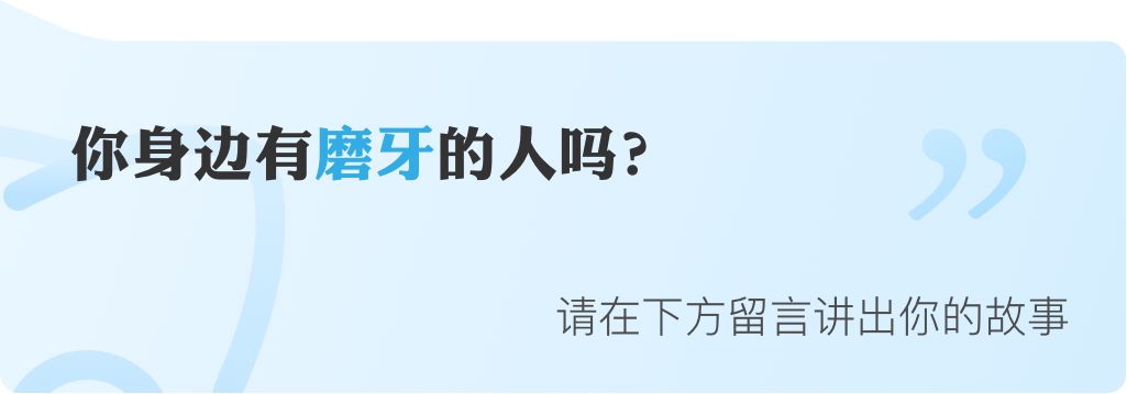 总之,我们不能忽视夜磨牙症这一种疾病,有磨牙习惯的人当出现一些口腔问题时,要思考一下这些问题是否可能与磨牙有关,并在就诊的时候,科学合理地选择科室,让无论是『标』还是『本』都能够得到妥善的解决。