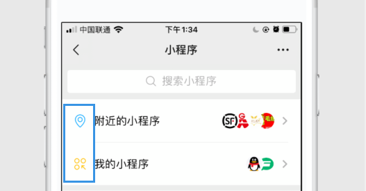 除了上面两个比较明显的改变之外,微信小程序页面的附近小程序和我的小程序两个选项前面新增了图标。