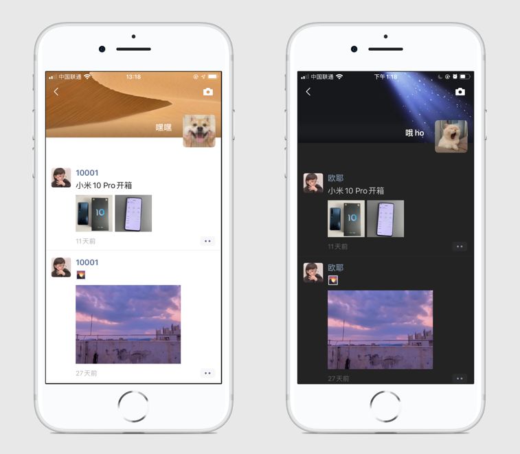我们先来体验一下微信的深色模式。