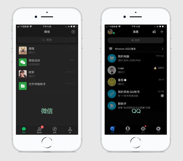 和手机QQ深色模式不太一样的是,微信的深色模式并不是全黑,而是深灰色的,看起来更舒服。