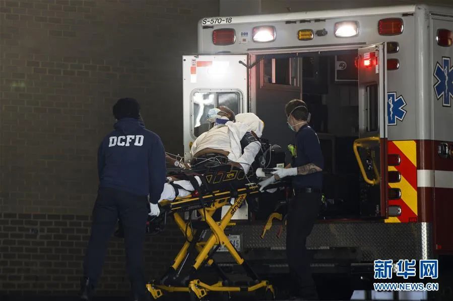 5月13日,在美国华盛顿的乔治·华盛顿大学医院,工作人员运送患者。新华社发(沈霆 摄)