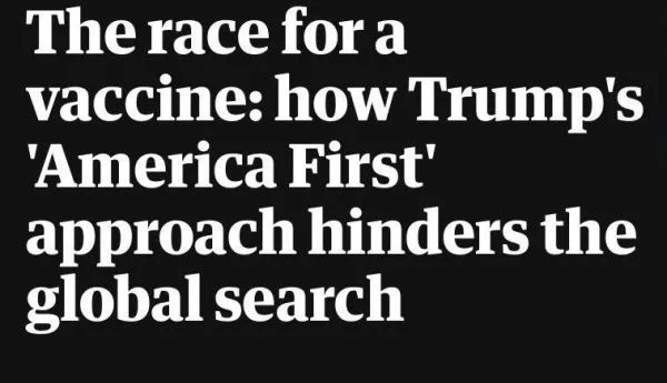 缺席全球抗疫的同时,特朗普则在吹嘘美国很快就会有好疫苗问世。