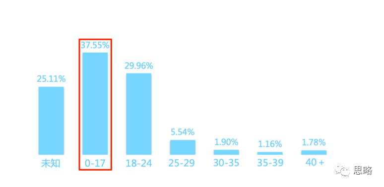 2016年,有人统计过B站用户的年龄结构。0 到 17 岁是 B 站用户的绝对主流,占比37.55%,接下来是18到24岁的用户,