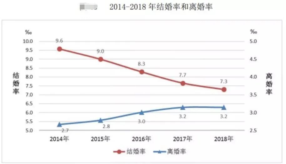 早在2018年,国家统计局和民政部就公布过一段数据,2017年全国结婚1010.8万对,离婚为380万对。
