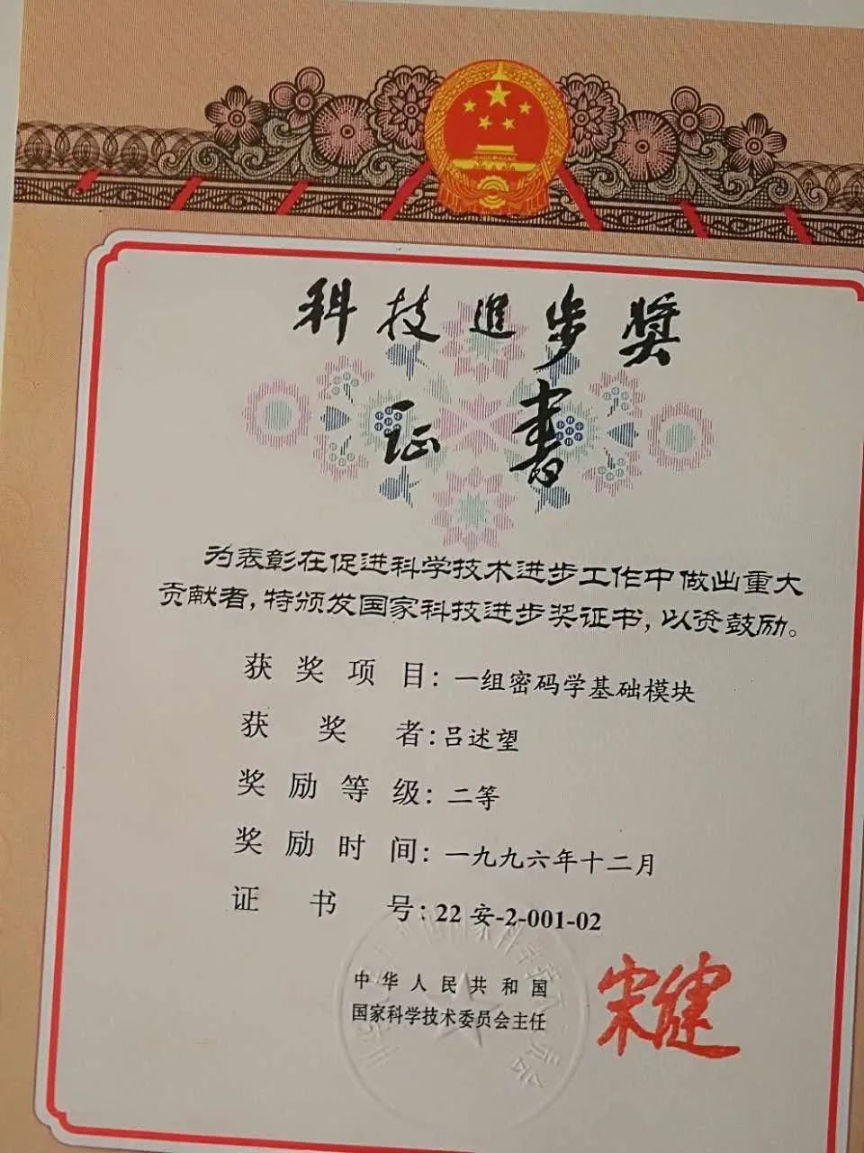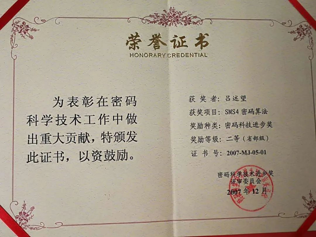 吕述望教授,1980年以来主要从事密码学、信息安全方面的研究。曾获得1986年度和1988年度中国科学院科技进步一等奖、1988年度国家科技进步二等奖、1992年度国家科技进步一等奖、1995年度省部级科技进步一等奖、1996年度国家科技进步二等奖、1997年度省部级科技进步二等奖、2000年度国防科学技术三等奖、金融科技进步二等奖、2001年度国防科学技术三等奖,均为各奖项的主要完**。1992年起享受国务院颁发的政府特殊津贴。