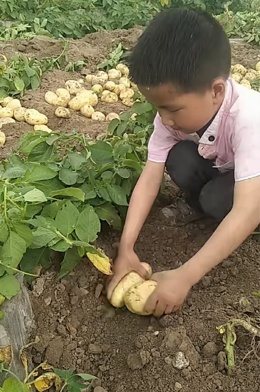 收玉米,种地,拉西瓜,收土豆.....样样在行,干得有模有样,就像个小大人。