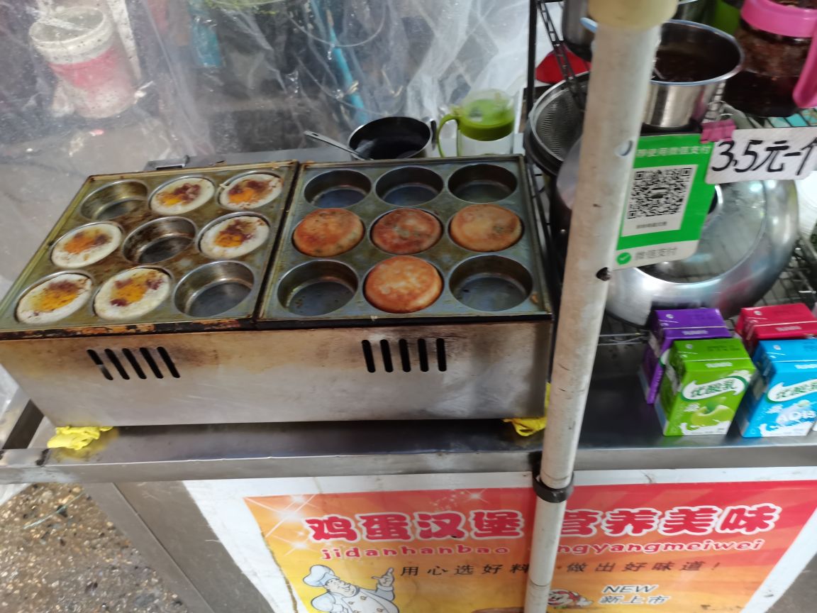 在围里社区内有一家美食早点路边摊,主要是做美味的鸡蛋汉堡,和美味的现磨豆浆。