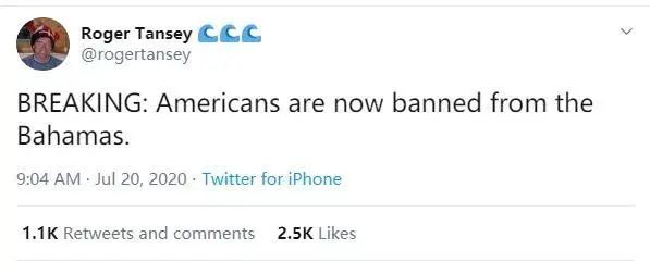 值得一提的是,当巴哈马宣布禁止包括美国人在内的外国人入境之后,美国的网民很快在网络上拿这件事嘲讽起了美国总统特朗普。