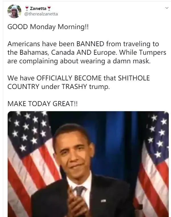 所以,当如今特朗普当局把美国的疫情搞得严重失控,轮到人家巴哈马反过来禁止美国人入境时,如此讽刺和打脸的事情,美国网民自然不会放过:拜特朗普所赐,美国自己成为了“粪坑国家”…..
