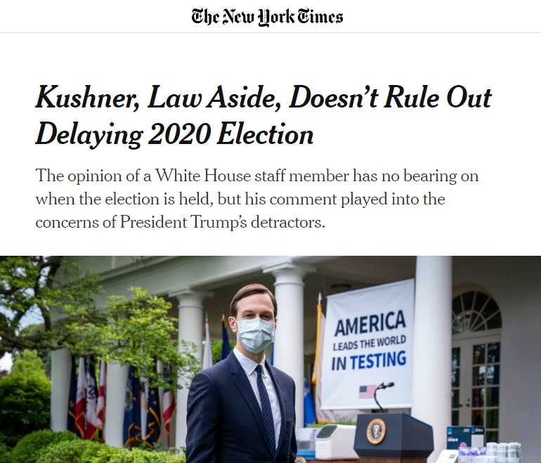 早在今年5月,特朗普的女婿库什纳就曾提议延期举行美国大选。