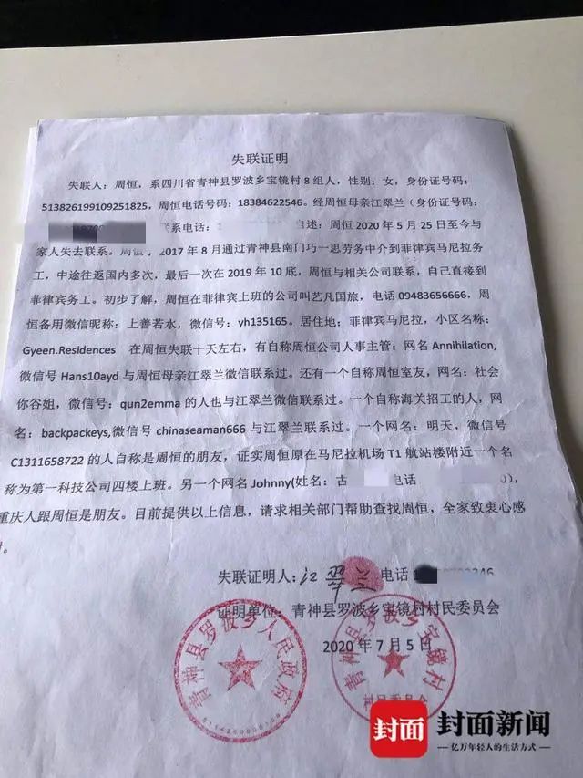 (原标题:四川28岁女子菲律宾失联73天,失联当天早上还与母亲视频)