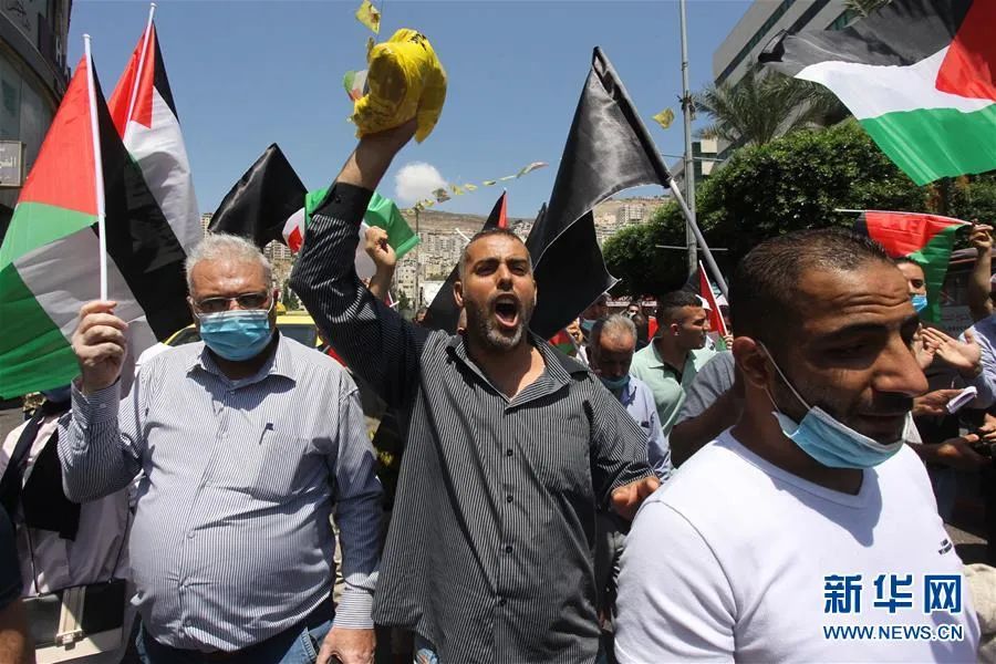 ▲8月14日,巴勒斯坦人在约旦河西岸城市纳布卢斯抗议以色列与阿联酋达成的和平协议。新华社发(尼达勒 摄)
