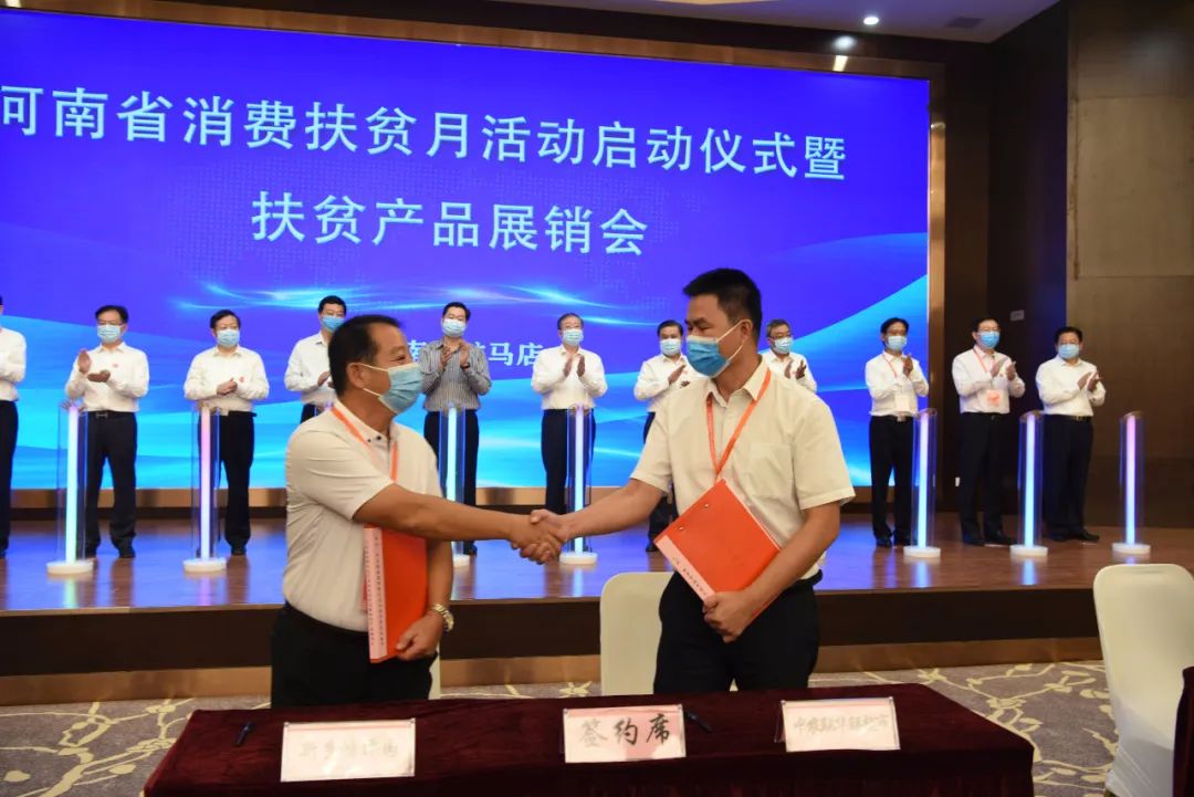 启动仪式上,河南豫之品农业科技有限公司等3家扶贫产品生产企业代表和中国蔬菜流通协会中农联控股有限公司等3家采购方代表进行现场签约。