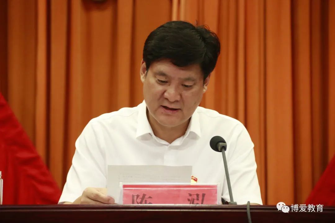陈书记说,同志们,教育承载着民族的希望、国家的未来,办好人民满意的教育,使命光荣,责任重大。让我们以更加昂扬的斗志、更加务实的作风,锐意进取求质量,辛勤耕耘育人才,奋力书写新时代博爱教育事业发展的新篇章,为我县加快推进“一轴两城五区”发展战略做出新的更大的贡献!