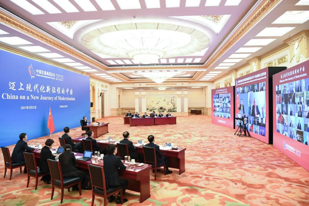 国务院总理李克强3月22日晚在人民大会堂以视频方式会见出席中国发展高层论坛2021年年会的境外代表。来自世界五百强企业的负责人、国际知名学术研究机构的专家学者和主要国际组织代表等参加。